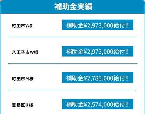 これまでに200万円を超える補助金を受給した実績※が多数あり、申請成功率はなんと100%※1の実績を誇っています。