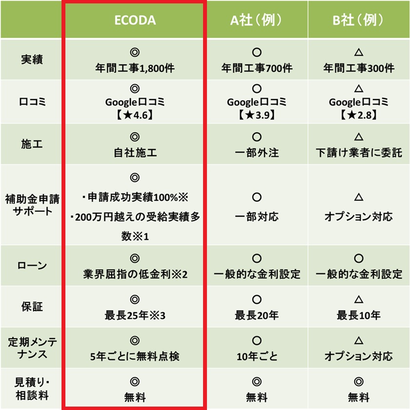 企業努力によって、高品質な工事を低価格で提供できるのがECODAの魅力です。