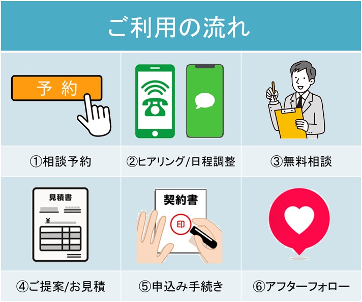 - 相談は何度でも無料!強引な営業・しつこい勧誘なしで初めてでも安心