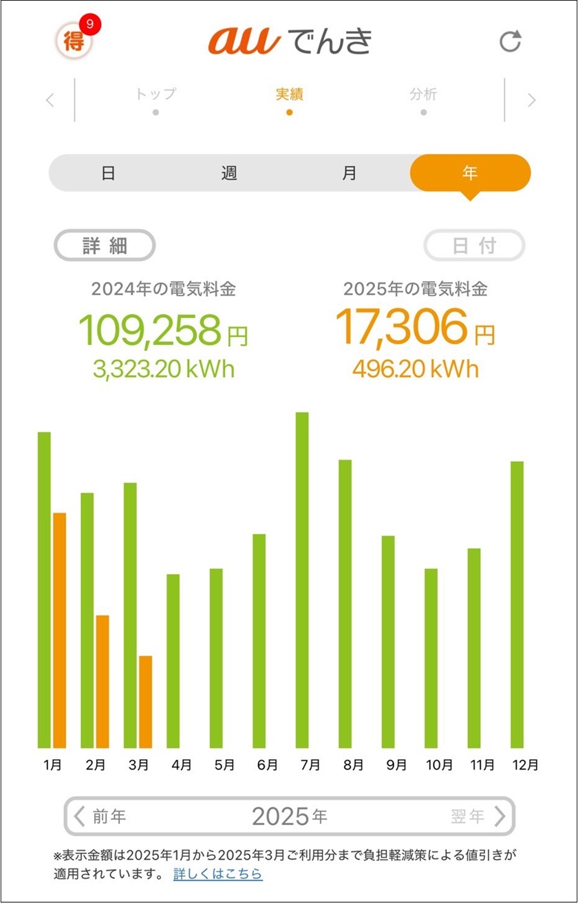 それに対し、導入後の2025年1月~3月の電気料金は17,306円にまで減少。