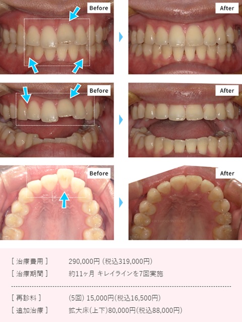 ※9:2025年11月21日(金)以降に来院された方が対象です|当保証は当クリニックで矯正治療された方が対象です。キレイラインの一部商品と小児矯正を除く。詳細はクリニックにお問い合わせください|保証は矯正後のリテーナー開始後2年間以上使用し、1年で最低3回・6か月以内の間隔で来院されている方が対象です|後戻り治療は矯正治療終了時点から後戻りしてしまった分を元に戻す治療を指します
