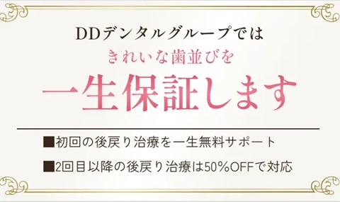 後戻りにも備えた保証制度で、治療後も安心
