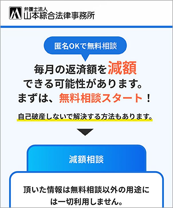 おすすめは「山本綜合法律事務所」の減額相談サービスです。