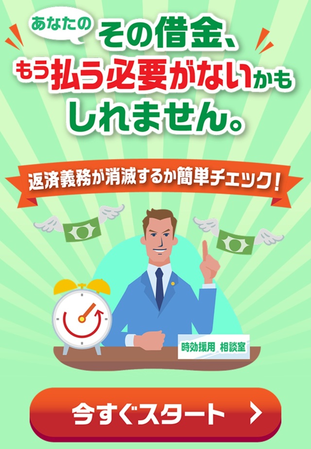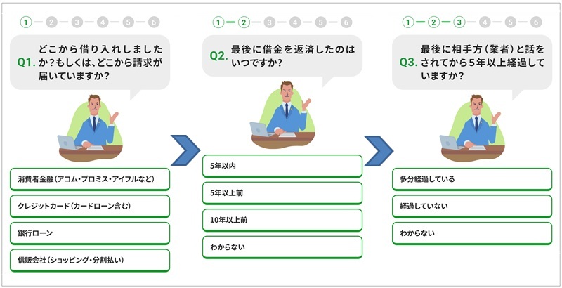 簡単な質問に答えるだけで、借金が時効に該当する可能性があるかが調べられます。