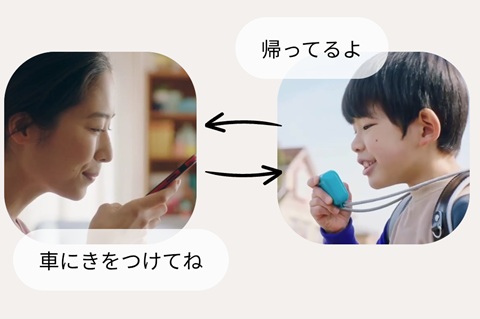 お子さまからの一言はもちろん、親からの「気をつけてね」「宿題して待っててね」といった声かけも気軽にできます。