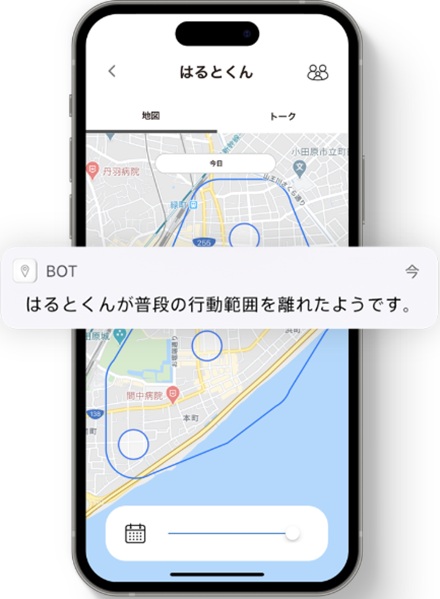 普段行かない場所への移動など、AIが違和感を検知して親に自動で通知※1してくれるため、いざという時のリスク管理もしやすくなります。