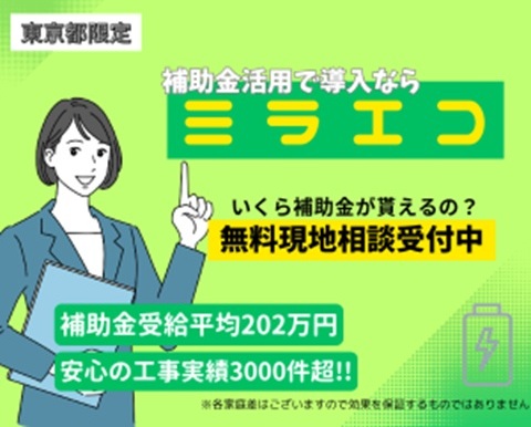 ミラエコは累計導入数3,000件以上・補助金平均受給額202万円の実績※を誇る業者。国家資格を持つスタッフが在籍しており、品質・安全性・対応力に定評があります。