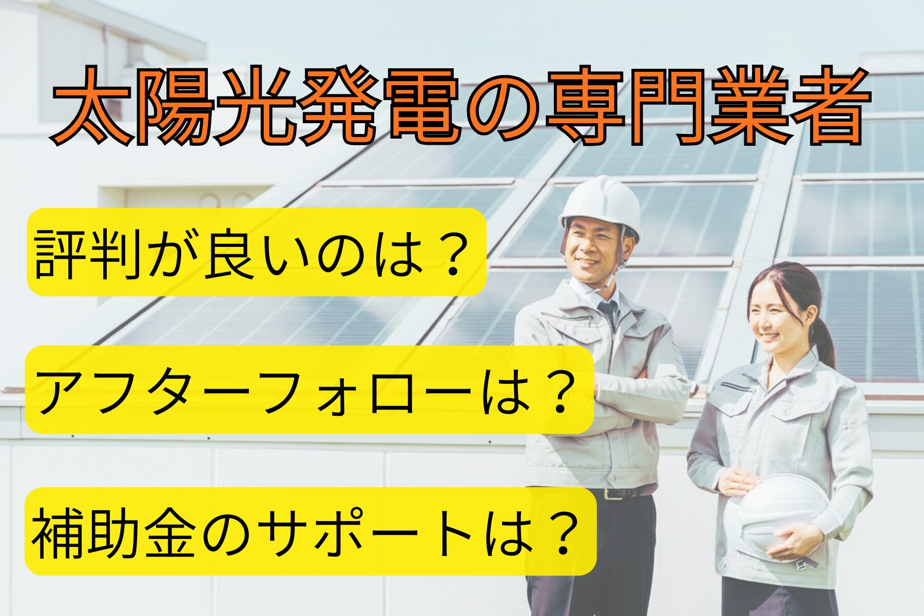 そのため、補助金の申請も、ほぼまるごと任せられる「太陽光発電専門業者」を選ぶのが良いでしょう。