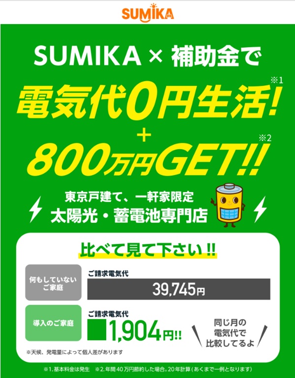 SUMIKAは、累計3,000件以上の導入実績を誇る太陽光発電・蓄電池の専門業者です。