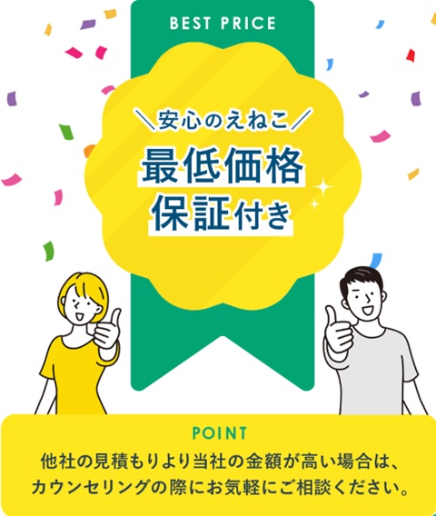 えねこでは、最低価格保証が用意されており、適正価格での導入が可能です。