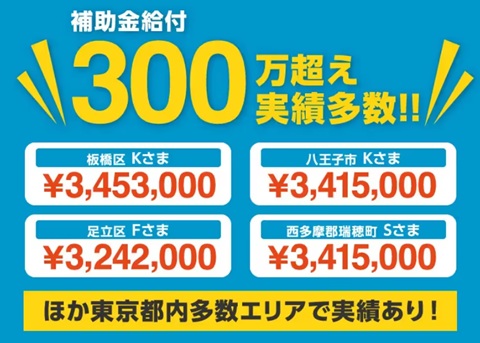 複雑で面倒な補助金の手続きは、専門のスタッフがほぼ全て代行し、これまでに300万円超えの補助金を受給した実績※4も多数あります
