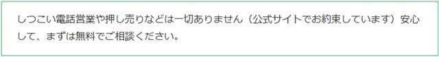 - しつこい営業・押し売りは一切なしで初めてでも安心(公式サイトでお約束しています)
