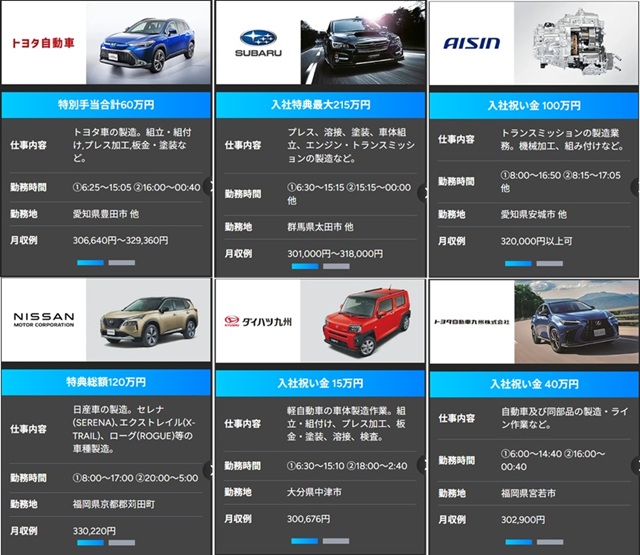 期間工で人気おすすめの自動車メーカー求人7社を比較