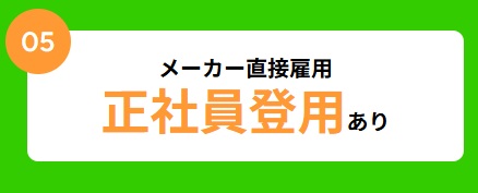 メーカー直接雇用による「正社員登用制度」もあり、長期的なキャリアを目指す方にもおすすめです。