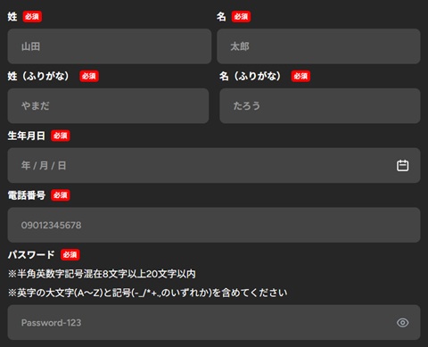 画面の指示に従って、名前・電話番号などを入力すれば、応募(登録)が完了です。