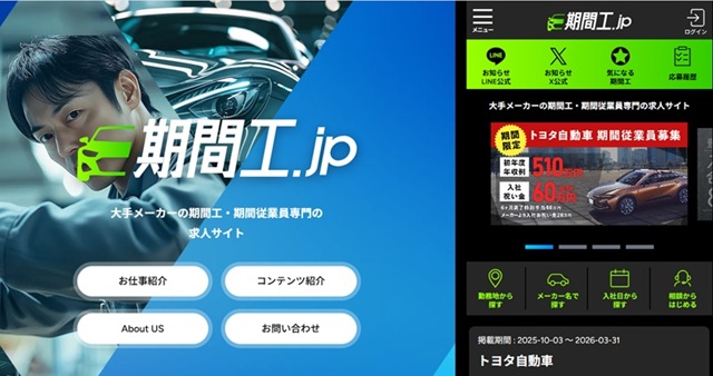中でも、特に今人気を誇っている期間工専門の求人サイトが「期間工.jp」です。