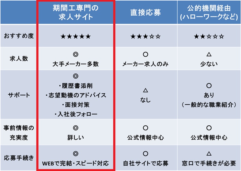 【知らなきゃ後悔】期間工への応募は「専門の求人サイト」からが有利