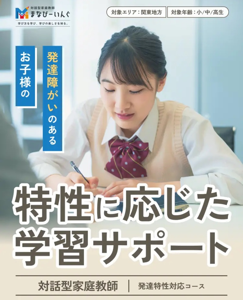 まなびーいんぐは、発達特性に合わせたオーダーメイドの指導と、対話を通じて「得意」を引き出す授業が魅力の家庭教師サービスです。
