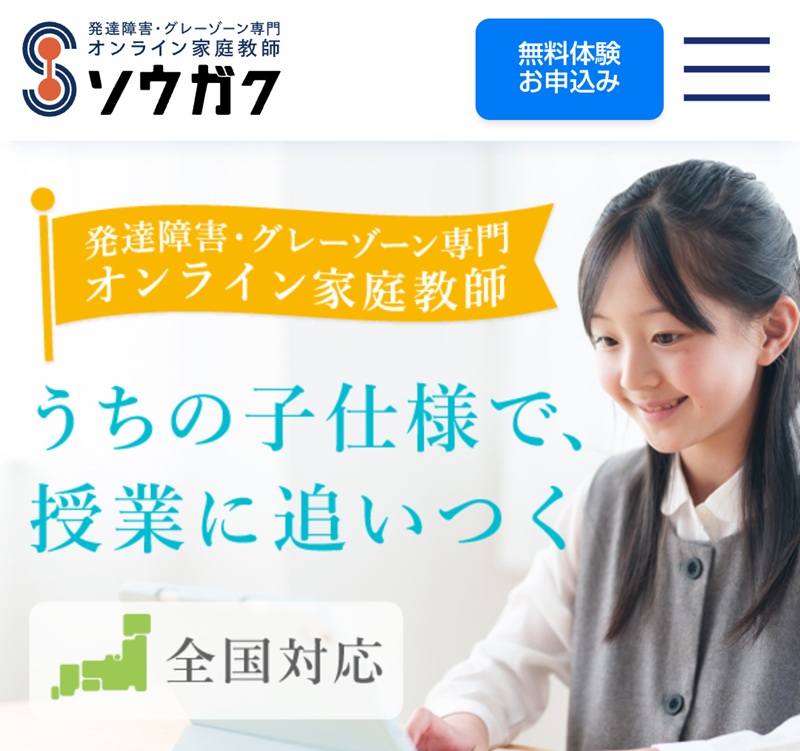 ソウガクは、発達障害・グレーゾーンに特化したオンライン家庭教師サービスです。