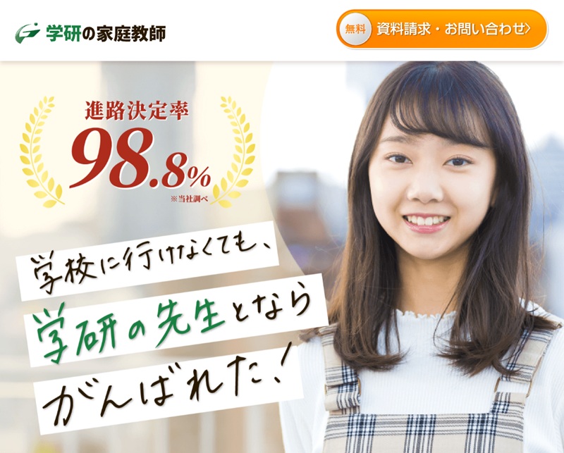 学研さんはとても親身になってくれ、不登校の傾向や過去に担当されていた生徒さんの進路、連携のある専門のクリニックをご紹介いただいたりと勉強だけではなく、心理面や生活面でも支えていただいたと思います。引用:公式サイト